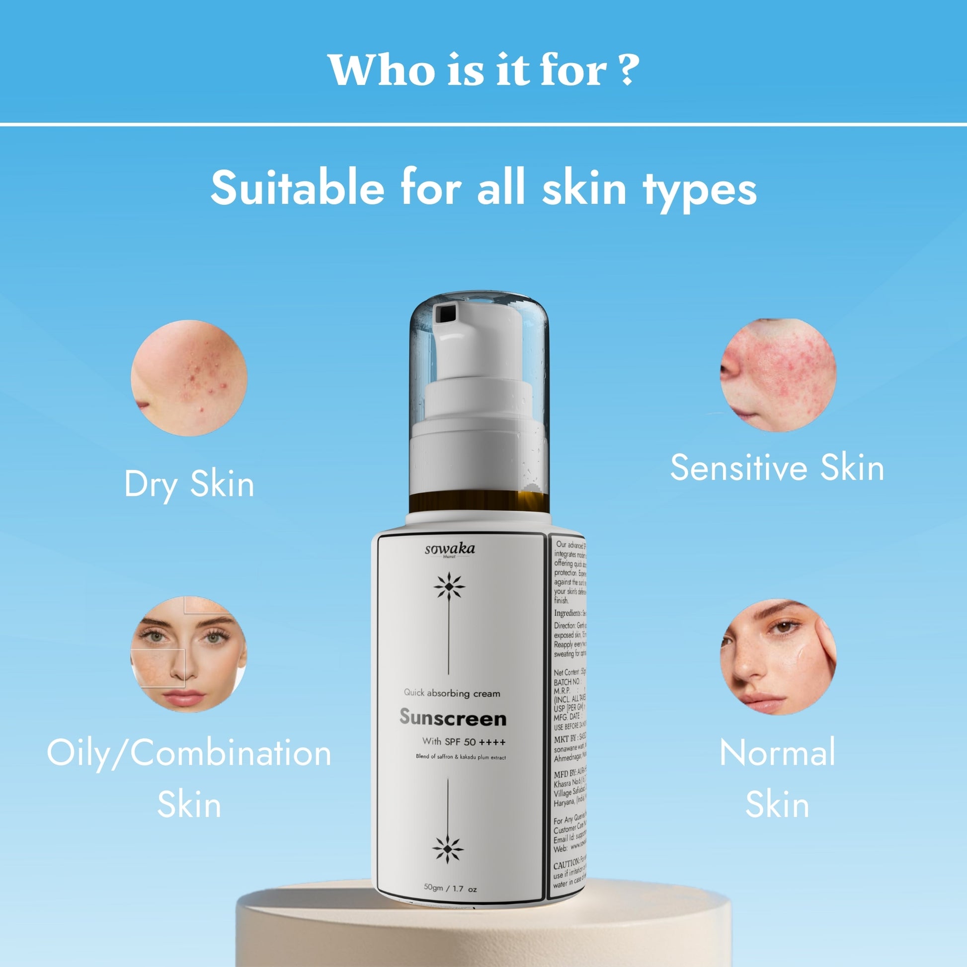 Shield your skin from harsh sun exposure with Sowaka Sunscreen SPF 50++++ — a quick-absorbing cream formulated to protect, hydrate, and blend seamlessly into Indian skin tones.